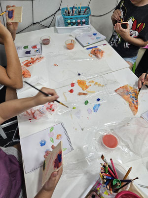 També teníem el taller de pintura, on vau creat quadres molt macos no només amb pintura, també vau utilitzar sorra, corda i tot tipus d'elements que os proporcionavem.